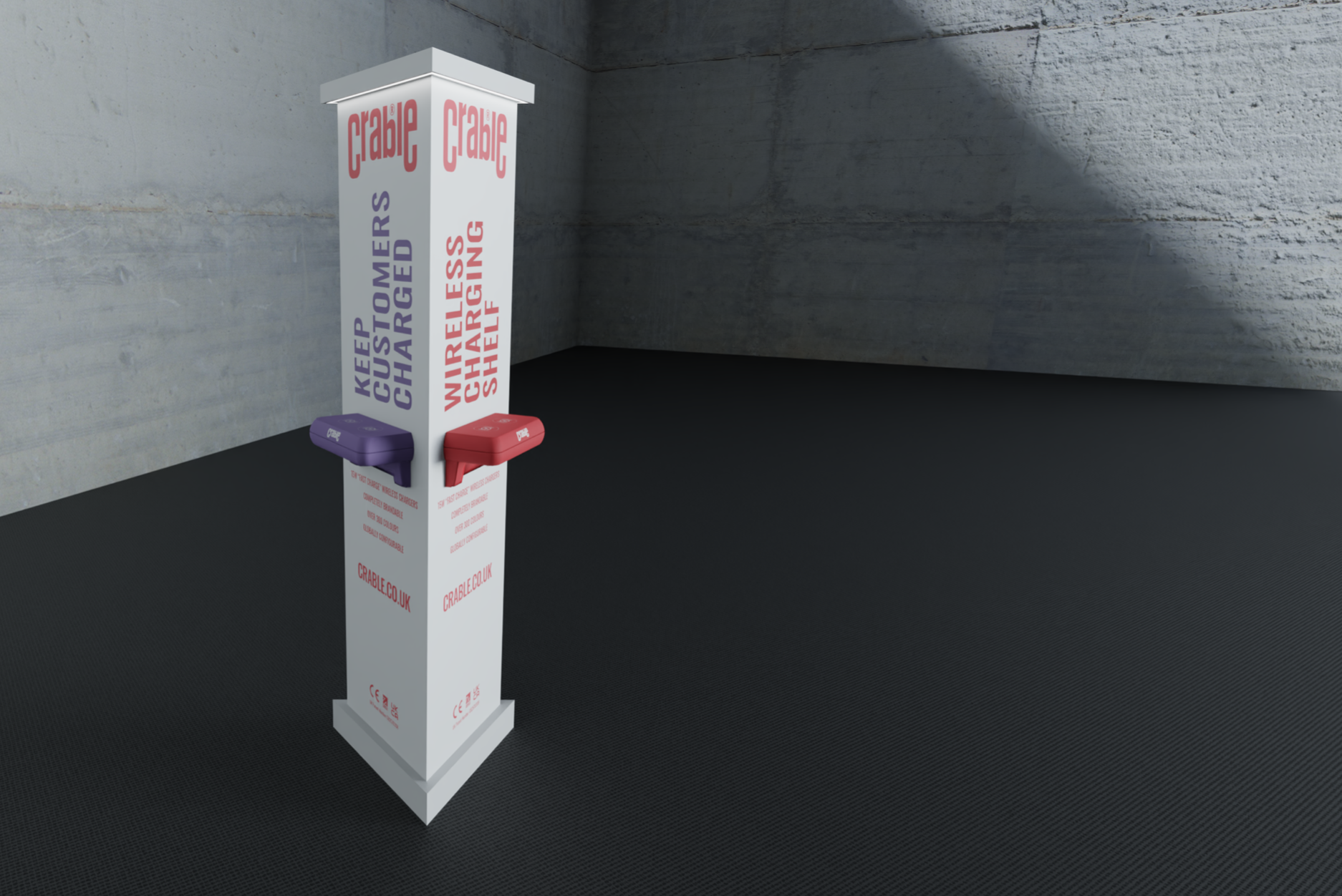 Crable wireless charging shelves are the perfect addition to your exhibition. Draw visitors to your stand for a FREE CHARGE.